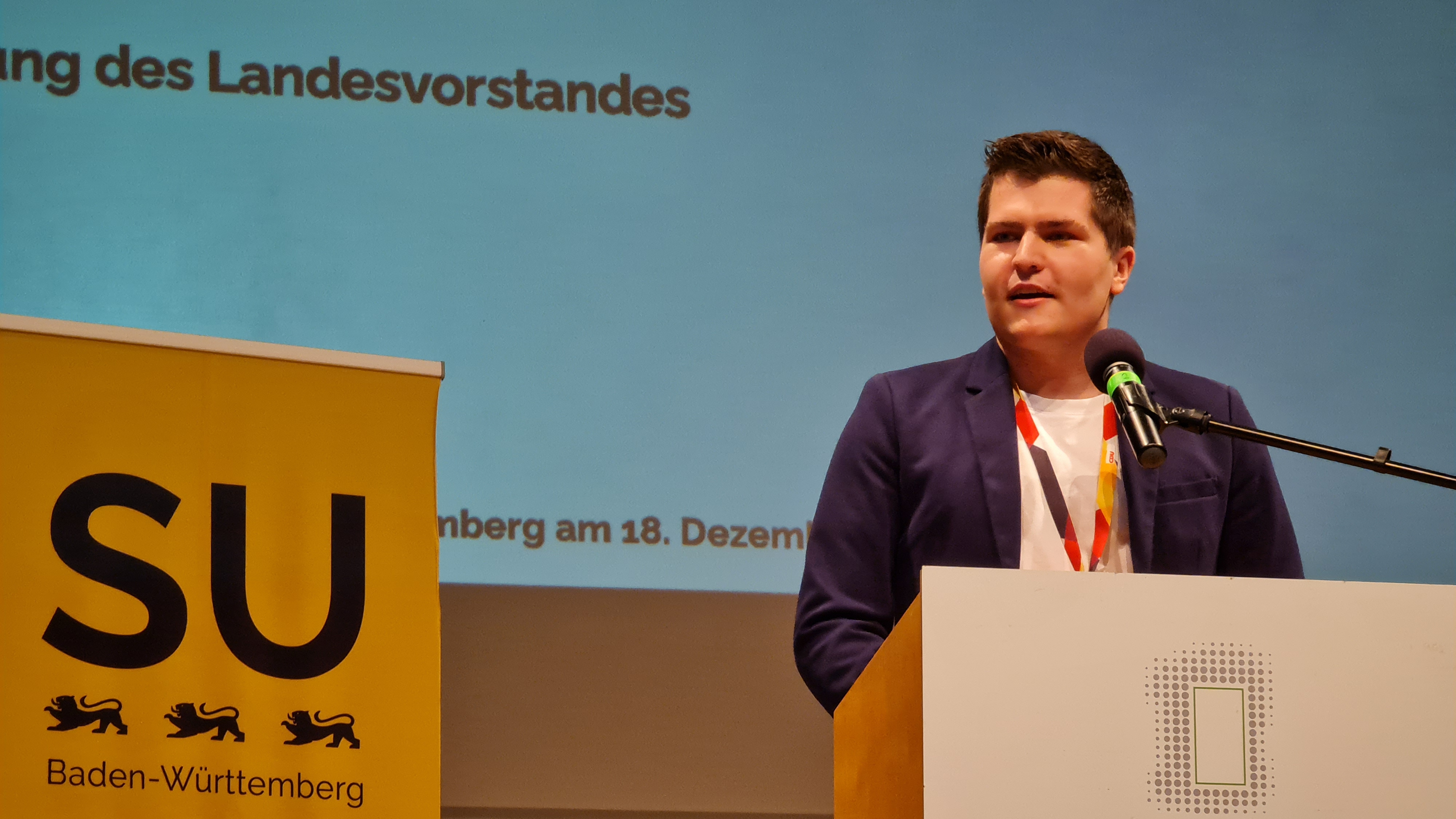 SU / Bernd Berghammer„Gemeinsam mit euch möchte ich den Aufbruch wagen, laut werden, uns positionieren und noch stärker für die Sache einstehen!“, erklärte Nico Gasch in seiner Bewerbungsrede.
